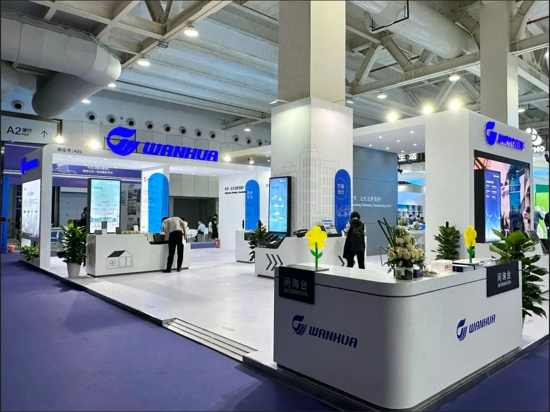 會(huì)議同期配套各企業(yè)展覽,聚焦“石油和化工行業(yè)高新發(fā)展”方向,萬(wàn)華化學(xué)的展位集中展示了公司在化工領(lǐng)域的新理念、新技術(shù)、新工藝和新產(chǎn)品。圍繞“建筑節(jié)能”、“清潔能源”、“交通出行”以及“健康生活”四大主題,帶來(lái)建筑材料、鞋材、汽車(chē)、風(fēng)電、電池、可降解材料等領(lǐng)域的整體解決方案,呈現(xiàn)對(duì)實(shí)現(xiàn)“雙碳目標(biāo)”的可持續(xù)發(fā)展道路的成果與思考。